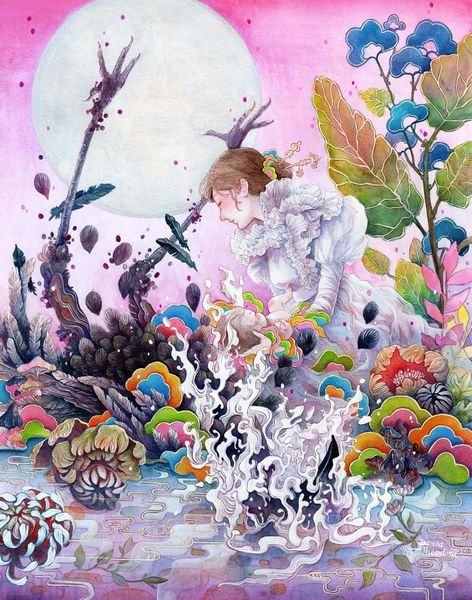 Editor: So, this is Thomas Kinkade's painting "The Little Mermaid." I don't see a specific date but I'm guessing it's late 20th or early 21st century, given the style. It's definitely oil on canvas. It’s such a bright and busy painting! It really leans into the sweetness of the fairy tale, wouldn’t you agree? What's your read on it? Curator: It's interesting to consider Kinkade's work within the broader context of popular culture and the art market. This image presents us with an interesting problem; we could see how this artwork became such a popular motif and the socio-economic and even political reasons as to why many enjoy displaying imagery with those values and familiar figures. Is it pure escapism or a manifestation of something deeper about our consumer culture? Editor: That's a thought, and I see what you mean. Are you saying that the picture became popular because people enjoyed that "dream life"? But aren’t fairy tales traditionally darker and grimmer? Is Kinkade diluting or reinforcing a particular cultural narrative about fantasy? Curator: Exactly. The sanitization and idealization seen here—the hyper-realized details, the carefully crafted "painter of light" effect—speaks to the power of Disney's version of this story as a powerful vehicle for cultural consumption. Editor: And thinking about who consumes it shapes how we view it? Curator: Absolutely! How this is consumed, and what are the political aspects behind this very widespread aesthetic that arguably is a commentary on contemporary living. Why, do you think, are we not able to fully celebrate the darkness that we are living, to engage more completely? Editor: So maybe the intense colors are more of a political statement than I initially thought. Curator: Possibly! That type of reading opens exciting conversations! Editor: I’ll definitely be pondering the historical popularity a little more from now on. Curator: A painting is never *just* a painting. We can't extract the image from the museum that contains it, the culture it reproduces and shapes, the collector's identity that is made explicit or implied with a given acquisition, or any number of possible readings.