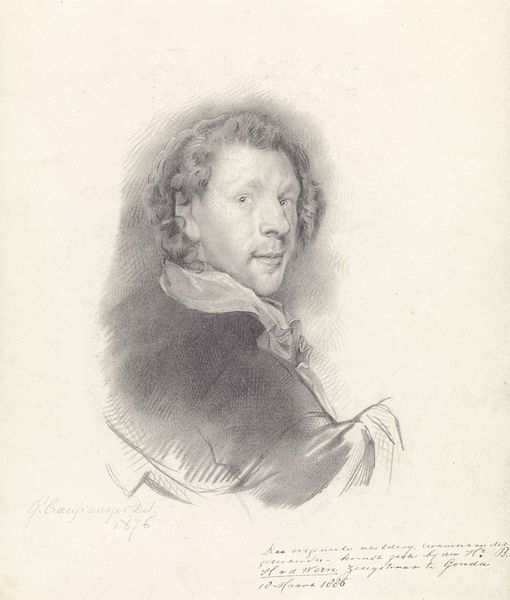 Curator: Ah, here we have a drawing attributed to Anthony van Dyck, titled “Jan Mildert.” It’s undated, but housed right here at The Art Institute of Chicago. A study in charcoal, chalk, and pencil on paper. Editor: It's disarming, in a way. Intimate, but almost haunting with its pale tonality and sense of suspended animation, don't you think? The stark contrasts almost flatten the picture plane. Curator: Exactly! And consider the skill with which Van Dyck captures Mildert's likeness. The eyes, holding this penetrating gaze. You feel he could look right through you. Editor: Those eyes are intriguing! The slightly averted gaze creates a compelling dynamic. But tell me, is it a fully realised portrait, or more a preparatory sketch? Curator: The line work leans toward spontaneity, an attempt to grasp the essence of Mildert quickly. Observe the unfinished areas around the ruff collar for instance; they give us insight into Van Dyck’s working methods. The medium certainly facilitates this air of improvisation. Editor: The texture of the paper visible beneath the drawing contributes, as well, creating a delicate interplay between the represented subject and the material reality of the work. The hatching in the clothing juxtaposed with the sensitive attention to detail on his face is a rather fascinating touch. It's not quite photographic detail, but a very lifelike presence conveyed, nonetheless. Curator: Absolutely! The unfinished nature is integral to the work’s beauty. I appreciate that this piece encourages us to appreciate art making as a process. And consider the power of line here, its ability to evoke form, shadow, even psychological depth. Editor: It reminds me how much drawings encapsulate what painting often seeks to express--capturing transient perceptions. It seems so much less mediated in comparison. I see Van Dyck here exploring what makes an individual human, with all of his softness and solidity rendered beautifully. Curator: A perfect coda for viewing "Jan Mildert" at The Art Institute. Let’s move onward.