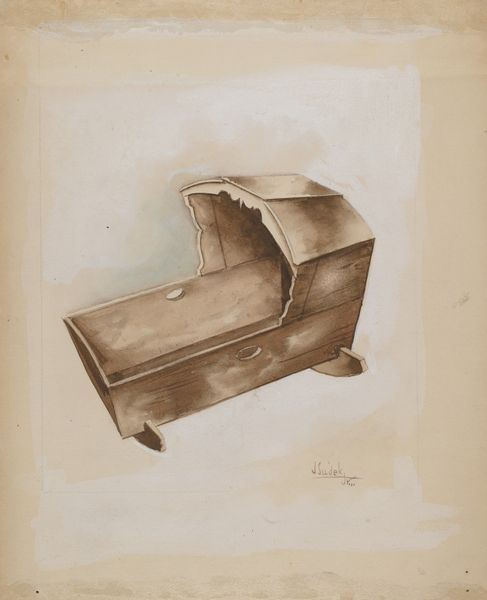 Editor: We're looking at Mary Hansen's "Box Cradle," a pencil drawing from around 1939. There’s something very simple and… I don’t know, quietly powerful about it. It’s just a cradle, realistically rendered. What do you see in this piece that grabs you? Curator: That quiet power you mentioned – I feel it too! It makes me wonder, doesn't it, about all the hopes and anxieties wrapped up in this simple wooden form? Hansen’s use of pencil, so unassuming, highlights the everyday nature of motherhood, but also… well, wood holds stories. Do you see how the grain almost becomes a landscape in itself? Editor: Absolutely, the wood grain does tell a story. Like rings on a tree. Curator: Exactly! Each line, each knot a record of time passing. And this isn't a pristine, perfect cradle, is it? It's got nicks and wear, signs of use. It suggests generations, maybe even the weight of history itself cradling new life. It’s like a symbol – something old giving way to something new, over and over. Almost poetic, don't you think? Editor: I hadn’t thought of it that way, but I can totally see it. So much meaning in what looks like just a plain, simple drawing! I thought it was the mood, but the texture brings it all together. Curator: I love how a single artwork can be a portal. Editor: Me too. Now, I definitely appreciate it more than I initially thought. Curator: The best art always makes you reconsider.