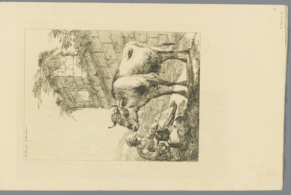 This is Henri Keller's "Eagle and Dog," an etching on paper that invites us into a subtle yet intriguing narrative. Notice the stark contrasts—the formidable eagle juxtaposed with the tender dog. Keller masterfully uses line and texture to define the eagle's plumage, creating a sense of power. The dog, nestled within the eagle's embrace, is rendered with softer lines, evoking vulnerability. The composition is carefully balanced, with the figures arranged on a rocky outcrop that grounds the scene. But what does it signify? Perhaps Keller is exploring the tension between predator and prey, dominance and submission. The etching challenges fixed meanings, inviting us to question our assumptions about nature and power. It offers a symbolic language, and through the delicate use of hatching, the artist destabilizes traditional categories. The meaning is unfixed, left open for interpretation.