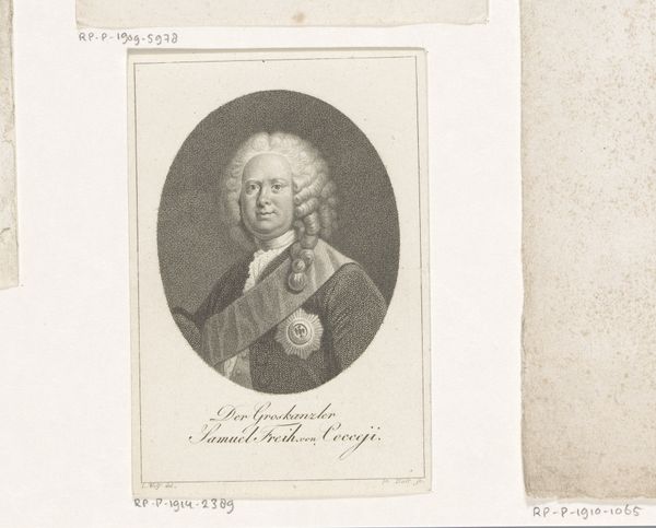 Editor: Here we have Christian Gottlieb Geyser’s portrait of Christian August Clodius, an engraving from between 1752 and 1803, at the Rijksmuseum. It’s… interesting, a very formal portrait, but what catches my eye is the incredible detail achieved through engraving. What stands out to you? Curator: The engraving is key. It places this work firmly within a specific social and economic context. We have to consider the labor involved, the tools, the very materiality of the copper plate and the paper it’s printed on. This isn't just about Clodius’s likeness; it's about the system of production that allows such an image to exist and circulate. Editor: So, it’s less about the *who* and more about the *how*? The engraving as a commodity almost? Curator: Precisely. Engravings allowed for the mass production and dissemination of images, catering to a growing middle class with disposable income. This portrait becomes a consumable object, a statement of status for both Clodius and the buyer. Look at the intricate details – that's not just artistry, it's skilled labor. What do those details suggest to you about the market for such an item? Editor: That only the wealthy could afford something so detailed and time consuming to produce! I hadn't really thought of the artist's time and skill as something for sale… more that they’re capturing someone's likeness. Curator: The likeness is secondary, serving the primary purpose of economic and social display. Consider the rise of paper production at this time, and the printing press - those all enabled a new era of cultural output. It’s a fascinating confluence of art, labor, and commerce, all embedded in this single image. Editor: That definitely reframes my understanding of the work! It's not just a portrait; it's a product of its time, shaped by economics and industry. Thanks!