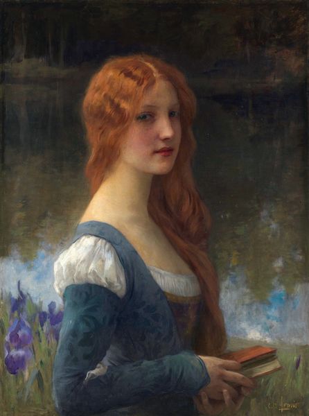 Editor: This is Pascal-Adolphe-Jean Dagnan-Bouveret's "Ophelia" from 1900, rendered beautifully with oil paints. I'm immediately struck by the painting's ethereal quality, it is almost like she's a ghost emerging from the reeds. What do you see in this piece? Art Historian: Ghostly indeed! The Romantic obsession with capturing that precise moment just before light completely fades, both literally and figuratively. Isn't she radiant, this melancholic muse? She feels plucked straight from the pages of Shakespeare, draped in white linen as she gently treads into the pond to her demise. Can't you almost smell the wet grass and hear the faint buzzing of dragonflies? Editor: Absolutely, I love how the greens seem to swirl around her figure like the river might swallow her any minute. You mentioned Romanticism—is that why she seems so tragically beautiful? Art Historian: Partly. Romanticism adored these kinds of emotional extremes. Think windswept moors and unrequited love. But it is that hint of Academic Art and it's control over composition here that really gives this "Ophelia" its impact. The Academic in Dagnan-Bouveret shows in the restraint he wields in her emotional presentation, where many from Romanticism would have chosen madness, here she is reserved. And do you notice how her gaze avoids yours, hinting at inner turmoil without giving it all away? Editor: Yes! And now that you point it out, that controlled sense of emotion really brings it together. Almost like a staged grief. Art Historian: Exactly! A portrait of a controlled loss. Don't you feel like the artist wanted us to empathize but from a safe distance? Perhaps, like peering into a perfectly preserved dream, where sorrow lingers, elegant and contained. Editor: That's beautiful, it totally reframes the whole picture for me. Thanks for this insightful little journey! Art Historian: My pleasure! Remember, art's true magic lies not just in what we see, but what it helps us imagine, what parts of ourselves we encounter in its reflections.