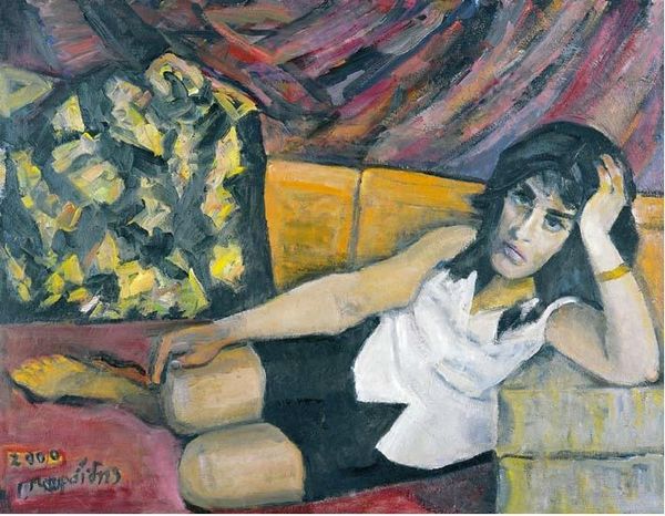 Ligia Macovei made this self-portrait, probably in oil, and the painting process looks like a mix of planning and letting go. There’s this odd, flat table in the foreground built up with careful, square marks of gold and yellow. Then her face, obscured by a hand, looks out at us. But behind her, there’s this slightly creepy, expressionistic space of trees. They’re like antlers, painted with thin, scratchy lines. They look both organic and totally artificial, right? That background feels like a stage set. It's as if she’s placed herself in a psychological landscape as much as a real one. This is where I think of Paula Modersohn-Becker, who did her own, strikingly honest self-portraits. But Macovei adds this layer of surreal unease. It's about the theater of the self, and how we perform even when we’re alone. It’s a reminder that self-portraits aren't mirrors. They’re conversations.