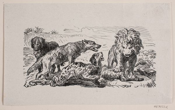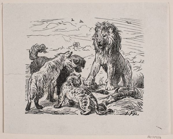 Editor: This drawing by Thomas Nast, titled "Great Britain and Russia in Confrontation over the City of Herat, Afghanistan," presents a tense standoff, doesn't it? What do you see in the use of animals to represent these nations? Curator: The lion and the bear are powerful, readily understood symbols. Nast taps into a rich vein of cultural memory. What feelings do these animals evoke, and how does that influence our understanding of the conflict? Editor: I see strength and aggression, but also a kind of stubborn pride. It makes the conflict seem almost inevitable. Curator: Precisely. The figures of the lion and the bear become containers, loaded with pre-existing cultural baggage. Nast masterfully uses these symbols to convey complex geopolitical tensions. Editor: So, the drawing uses visual shorthand to communicate a deeper meaning? Curator: Exactly. Recognizing these symbols allows us to access the historical context and emotional weight of the conflict, revealing the enduring power of imagery. I've learned more about symbolism today! Editor: Me too! Thank you!