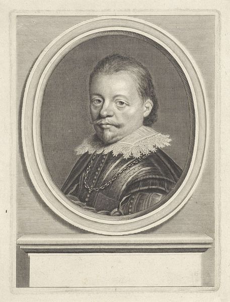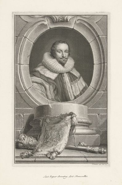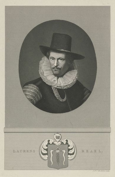 Christiaan Lodewijk van Kesteren made this portrait of Gillis de Glarges with etching around the mid-19th century, we don't know the exact date. Van Kesteren lived in a time of significant social and political change in the Netherlands. Photography was on the rise, challenging traditional portraiture. This context perhaps pushed the artist to experiment with etching techniques to capture not just a likeness, but also the essence of the sitter's social standing. Gillis de Glarges is presented here within the conventions of power, evident in his formal attire and the inclusion of his coat of arms. Yet, looking beyond the surface, this portrait also offers a glimpse into the personal dimension of identity. I wonder about the untold narratives of individuals immortalized through these images. This etching then is more than a historical record; it's an invitation to reflect on the complex interplay of identity, representation, and power across time.