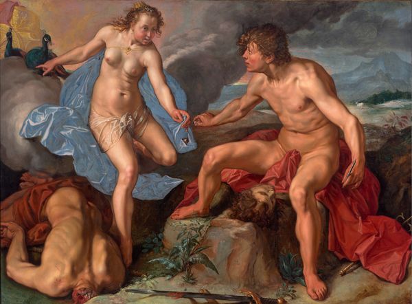 Peter Paul Rubens painted "Venus and Adonis," a drama of color and flesh, likely in the early 17th century. The composition is a dynamic swirl of bodies—Venus, Adonis, and Cupid—set against a contrasting background of light and dark, which creates a sense of movement and tension. The figures are rendered in a style that emphasizes their physicality, with particular attention to musculature and the texture of skin. Rubens's use of color reinforces the painting’s narrative. The deep reds and blues in Adonis's garment contrast sharply with Venus’ pale skin, highlighting their distinct roles and destinies. The semiotic interplay between color and form suggests themes of love, desire, and impending tragedy. The painting's composition and color serve not merely as aesthetic devices but as structural elements that convey meaning and evoke emotional response. It is an open text inviting ongoing interpretation within broader cultural and philosophical contexts.