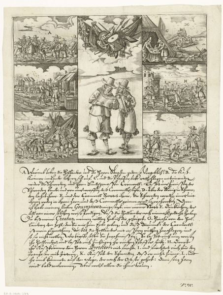 This print, made by an anonymous artist around 1597, depicts the Spanish losses during Maurits’ campaign. The piece is a powerful visual and textual commentary on the shifting political and religious landscape of the Dutch Golden Age. The upper half shows two scenes: on the left, Spanish troops are routed, some drowning in a river, symbolizing defeat and chaos. On the right, a formal gathering represents a council or negotiation, perhaps signifying the transfer of power. Below, a dense block of text, likely a poem or song, adds another layer to the print. The script emphasizes the emotional weight of loss and the anticipation of a new order. This work reflects the intersection of military conflict and religious identity during a pivotal time in Dutch history. It captures the anxieties, hopes, and cultural pride that defined the era, offering a glimpse into the human experience of war and political upheaval.