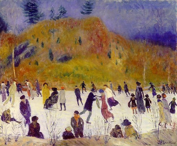 George Bellows made this painting, Love of Winter, with oil on canvas, and right away, you can see he's having a lot of fun with the paint itself. It's all about the process of laying down these brushstrokes, thick and juicy, to create a scene bursting with life. Check out how Bellows uses short, choppy strokes to build up the snowy landscape, there's a real physicality to the way he applies the paint, you can almost feel the cold, crisp air and the crunch of snow underfoot. And that hazy light, it's like he's captured a fleeting moment, a memory of a perfect winter day. I love the variety of marks he uses, they’re almost like musical notes forming a melody, and if you look closely at the figures in the foreground, you can see how he uses color and brushwork to give them weight and presence. Bellows's work reminds me a lot of other painters like the Canadian artist David Milne, who was working at the same time. Like Bellows, Milne embraced the materiality of paint and the endless possibilities of color, and neither were afraid to leave things a little unresolved, reminding us that art is a conversation, not a lecture.