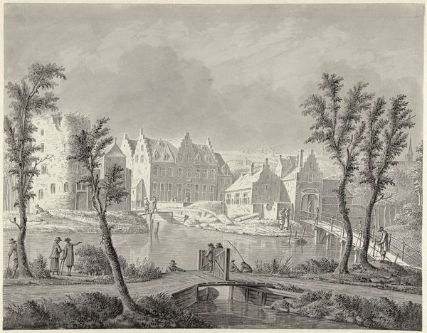 Editor: This is "Villagers Merrymaking" by L. Truchy, held at the Harvard Art Museums. It has a festive feel, but the detailed etching also makes it seem a bit dreamlike. What catches your eye in this piece? Curator: The juxtaposition of the castle and the villagers points to a complex relationship of power. What does "merrymaking" mean under the watchful eye of such an edifice? What stories are embedded here? Editor: That's interesting. It makes you wonder if their happiness is truly their own. Curator: Indeed. Perhaps the artist is not simply capturing a scene, but subtly commenting on the social dynamics of the time. Food for thought. Editor: Definitely something to consider. I'll look at landscapes differently now.