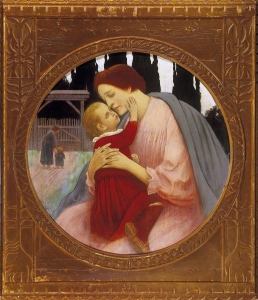 Jessie Willcox Smith created "A Child's Prayer," with soft pastels and gentle hues that evoke a sense of quiet intimacy. The composition is carefully structured, drawing the eye from the angelic figures at the top to the mother and child at the center, down to the musical score below. The muted color palette and diffused lighting create an atmosphere of serene contemplation. Note how Smith plays with line and form, using delicate strokes to define the figures while softening edges to suggest a dreamlike state. This recalls turn-of-the-century sentiments and notions of innocence. The superimposition of text at the bottom can be interpreted through a semiotic lens as Smith is layering visual and textual elements to enhance the image's spiritual and moral dimensions. Smith does not simply illustrate a scene but constructs a symbolic representation of faith and purity. Observe how the composition encourages viewers to engage reflectively, combining visual and cultural codes. The artwork is, therefore, not a static object but a dynamic site for interpretation.