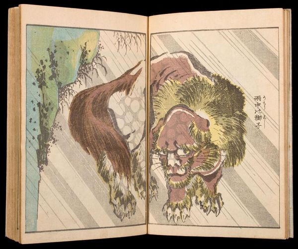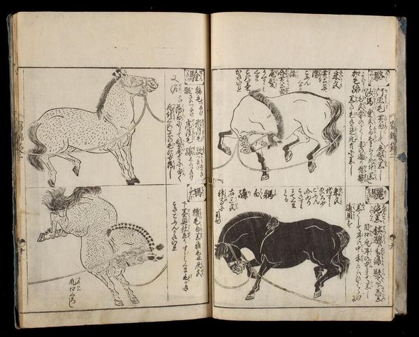 Curator: Just look at this dynamic bull! I find this image so evocative. The woodblock print we’re looking at comes from a ten-volume series, "Bag of Historical Treasures and People of Japan and China," by Tachibana Morikuni, made sometime before his death in 1748. Editor: It does have a raw, untamed energy. The bull is beautifully rendered, even though it's almost monochromatic. I wonder what its presence meant to the people who first encountered this image? Curator: Well, consider the context of Japanese print culture. Books like these, accessible and relatively inexpensive, played a huge role in disseminating knowledge and shaping cultural attitudes. So, a bull like this might have represented agricultural prosperity or even a connection to the natural world. Editor: I like the idea of everyday people engaging with nature through art in their homes. Curator: Exactly! Morikuni created this artwork to both celebrate and instruct. He left behind a world seen through his eyes. Editor: And we get a glimpse of it, too.
