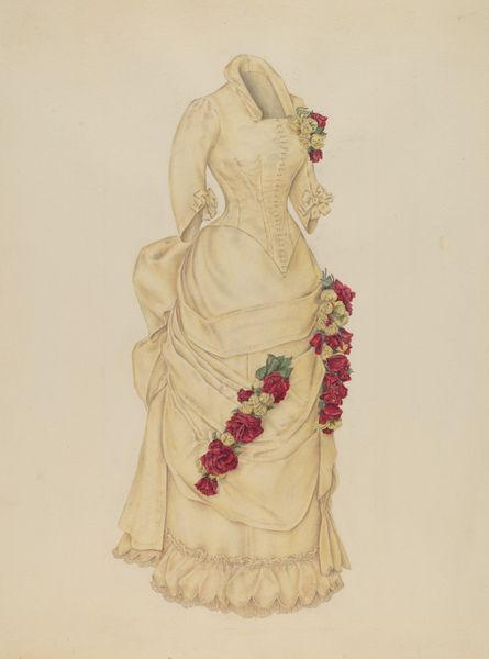Bessie Forman made this watercolour, titled ‘Dress’, and in it, the layers of translucent paint create a luminous effect. The material aspect of this work is particularly striking. The way the watercolor washes over the paper allows the whiteness to shine through, creating a gentle glow. You can almost feel the delicate fabric and soft touch through the colour, but it still captures the structured shape of the garment. The paint is thin, applied in transparent layers that allow light to penetrate and reflect. There's a sense of airiness, as if the dress might float away. Notice the delicate floral embellishments scattered across the gown; the red pops against the muted tones of the dress. Forman’s approach to this image is comparable to what you might see in the works of someone like Georgia O’Keefe; it is a testament to the way an artwork can embrace ambiguity, celebrating multiple interpretations over fixed meanings.