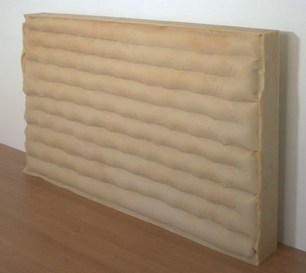 Curator: I see layers...of anxiety, maybe? It’s beautiful, but like a breath held too long. Editor: This is “Trasparente,” made in 1977. It’s an assemblage piece by Carla Accardi, employing mixed media within a simple wooden frame. It plays with translucency, form, and surface. Curator: Assemblage... yes, the whole thing has that kind of cobbled-together energy. And "Trasparente," transparent, really isn't. It’s veiled, almost suffocated. Are those layers of plastic? Like a packaged promise gone stale. Editor: It's about highlighting the construction, drawing our attention to often-overlooked industrial materials like transparent plastic sheets. Accardi uses a traditionally undervalued material, questioning the hierarchies in art. Consider too the ready availability of the plastic after WWII; it became the fabric, the form of a newly manufactured postwar reality. Curator: So, instead of idealizing transparency, she's confronting us with its cheap, mass-produced reality, and the claustrophobia that comes with it? I keep seeing window blinds, almost domestic, like the promise of privacy in some cookie-cutter apartment block. Editor: The piece invites contemplation about the nature of transparency and how our experiences are increasingly mediated by manufactured realities. In some ways it anticipated the debates surrounding consumerism and environmental concerns, even today. Curator: Funny how art can be so ahead of the curve, pointing us towards feelings we haven’t even fully processed yet. Even the frame itself looks rough, unvarnished, almost unfinished. Editor: Exactly. This underscores the artifice and material nature, a refusal of traditional, highly-finished artwork. The piece engages with a conceptual play between process, perception, and the everyday object. Curator: It leaves me both uneasy and intrigued. The mundane given this weight. A sort of uncomfortable beauty... the tension keeps you looking. Editor: I agree, and what initially looks very simple and geometric, slowly reveals so many questions, doesn't it?
