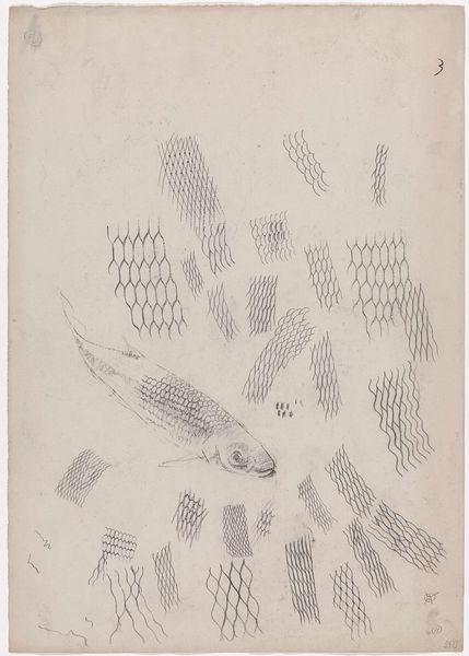 Gerrit Willem Dijsselhof made this sketch of fish with pen and ink on paper. It's interesting to consider the materials, and how they influence our perception. The artist chose a humble support, a simple piece of paper, and then deployed ink, an ancient medium with a rich history tied to writing and drawing. Dijsselhof used quick strokes to capture the essence of these fish, focusing on their forms and expressions. The immediacy of the ink lends a sense of spontaneity to the work. You can see the artist's hand in every line, revealing the artistic process. Dijsselhof was clearly interested in the fish, but how much labor did he want to invest in this artwork? And what do these sketches tell us about the place of humans within the natural environment? These are the questions that make this seemingly simple sketch such an engaging and insightful piece.