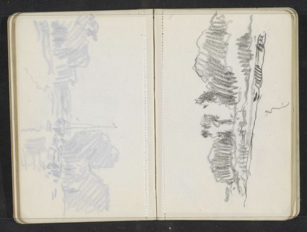 Editor: Here we have Alexander Shilling's "Landschap met bomen en een molen," or "Landscape with trees and a mill," a pencil drawing on paper from around the 1909s. It feels very gestural, a quick sketch, almost like a memory being captured. What do you see in this piece? Curator: Immediately, I’m struck by the windmill itself. A windmill signifies so many things, doesn’t it? A symbol of industry, sure, but also of human ambition against the forces of nature. Think of Don Quixote tilting at windmills! Shilling isn’t giving us a triumphant monument; instead it’s a humble structure nestled within the landscape. The sketched quality makes me wonder what sort of emotional or psychological weight this symbol has here. Do you get any sense of that? Editor: I do, especially the way the trees seem almost like protective figures looming over it. It feels almost melancholic. Curator: Precisely! Consider that in folklore, trees often represent shelter, family, the continuity of generations. Are these the keepers of history? In this way, the mill itself also serves as more than just industry, no? A memory, almost faded, and one could view this landscape as an exploration of memory and continuity within nature itself. A grounding of sorts, in an uncertain world. Editor: I never would have thought of the trees as keepers, but it gives a whole new layer to it! Thanks! Curator: Of course. Paying attention to our visual language reveals those deeply seeded connections that might otherwise be missed!