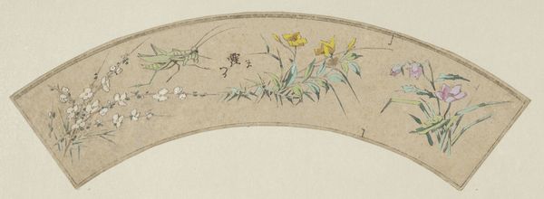 Editor: We are looking at “Procession of Insects,” an ink and watercolor painting from sometime between 1834 and 1897 by Nishiyama Kan'ei. The painting feels whimsical; it's full of small, carefully rendered insects seemingly carrying… a box? What strikes you when you look at it? Curator: What immediately draws my attention is the emphasis on process here. The use of ink and watercolor allows for a delicate, almost scientific depiction of each insect. It feels less about high art and more about a meticulous record, almost like an entomological study rendered with artistic skill. What do you make of that material choice, that pairing of ink and watercolour, to portray something seemingly trivial? Editor: It’s interesting, because it elevates what might be considered mundane—bugs!—into something worthy of artistic attention. The medium helps emphasize their intricate details. Curator: Exactly! And the procession itself…it makes me consider labor. These aren't idealized forms. We see a collective effort. It makes you question: What’s in the box? Is it a burden, or sustenance? Perhaps it hints at social hierarchies present even within insect colonies, a miniature reflection of human society through materiality. Notice also the background. How does it influence the interpretation? Editor: I hadn't thought about it that way! The simple background really pushes you to focus on the subjects and their actions rather than some broader narrative scene. It keeps returning to the question of what the box represents. I like your idea that it represents some labour burden, and all these tiny things become like the working class. It's something that can translate between cultures as well; almost universal. Curator: Precisely. And through this lens, "Procession of Insects" encourages us to reflect on the unseen labor that underpins so much of what we consume and experience. It prompts questions about value, not just in art, but in all aspects of production and existence. Editor: This has really changed how I view this work; thanks for opening my eyes to the materialist view, thinking about labor and the means of artistic production in society! Curator: And I appreciate you highlighting the universality of it. The painting reminds us to observe, question, and value all processes.