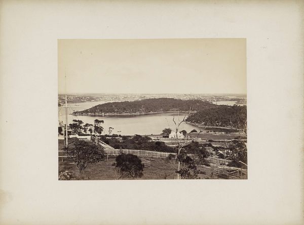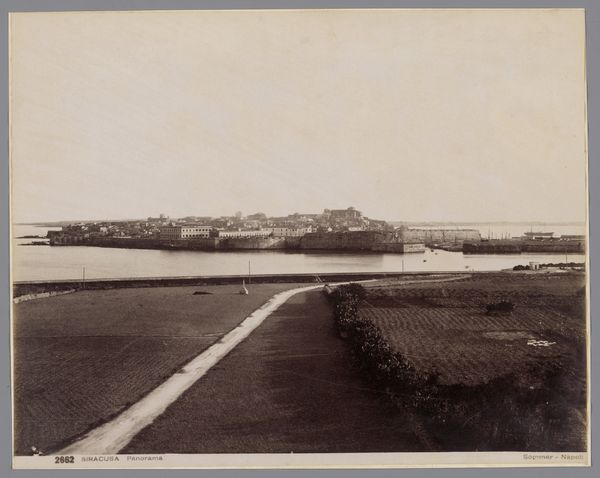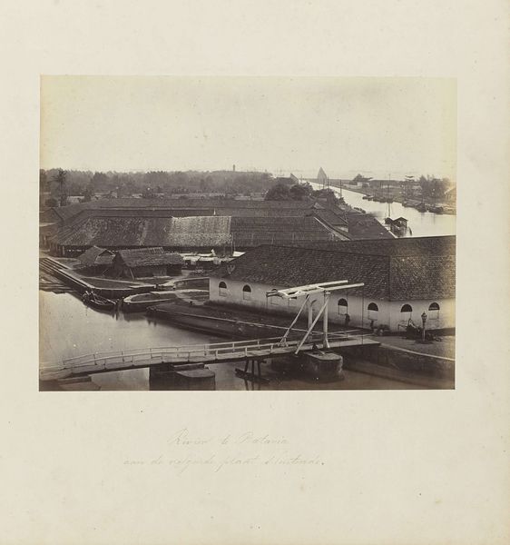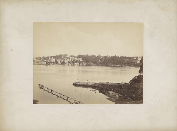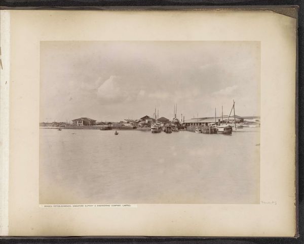 Curator: This albumen print, titled "Gezicht op de gebouwen, kades en omgeving van de Tanjong Pagar Dock Co. Ltd. in Singapore", comes to us from before 1905 and was created by G.R. Lambert & Co. Editor: My first impression is one of faded grandeur. There's something haunting about this sepia-toned vista, as if the present has overgrown a once-vital, structured space. Curator: Albumen prints such as this one were widely used during that era because of their ability to produce incredibly detailed and sharp images, a result of a complex process involving coating paper with egg white and silver nitrate. Consider the sheer labor and chemistry that goes into each print! Editor: And, we can’t ignore the implied labor this scene supported and exploited. Look at the strategic placement of the docks and the implicit relationship between colonial power, resource extraction, and the subjugation of indigenous populations. Singapore, even then, a vital port, a cog in a global machine built on inequality. Curator: Indeed. Tanjong Pagar Dock Company, formed to consolidate shipping and warehousing, rapidly changed Singapore’s economy and port infrastructure, making the landscape and its products available in different material ways. Note how the photograph renders every detail in the built structure, foregrounding Western presence in the region. Editor: It's difficult to disconnect this “view” from the reality of colonial expansion, and also the loss of place. While seemingly documenting progress, we can’t overlook the voices erased in the relentless march of imperial advancement. Curator: Absolutely. And the photograph as a reproducible medium further democratized that image for mass consumption, feeding colonial desire, as if a collectible commodity in itself. Editor: Perhaps viewing it then necessitates a focus on subaltern perspectives that complicate its historical narrative by interrogating power structures. This approach humanizes overlooked elements of this urban development, as well as reveals inequalities that the image glosses over in order to facilitate economic objectives. Curator: By analyzing both the technology used to create the image as well as the broader social and economic structures implicated in the Tanjong Pagar Dock’s operation, we expose a dialogue on what art does. Editor: So this photo offers, if we're open to looking critically, an uncomfortable, but necessary dialogue with a very painful legacy. A starting point, perhaps, for decolonizing our perception.