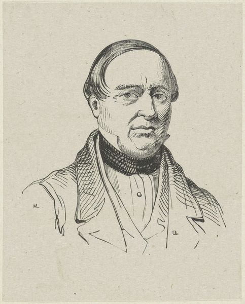 Editor: Here we have Coenraad Hamburger’s “Portret van Albertus Brondgeest,” a pencil drawing from 1841. It has such a stoic feel. I wonder, how do you interpret this work within the artistic landscape of its time? Curator: The realism on display is indeed striking. We see here the rise of the bourgeois subject. Portraiture, once the domain of the aristocracy and high clergy, expanded its purview in the 19th century to include merchants, scholars, and professionals. What strikes you about the visual choices made here? Editor: The detail is incredible for a pencil drawing. The shading really gives dimension to his face. Curator: Indeed. The piece presents itself as an objective rendering, but of course, is imbued with artistic decisions. Consider the context in which a portrait like this would be displayed or commissioned. Who was this man, Albertus Brondgeest? Was this portrait meant for public display or private contemplation? It signals a shift toward a broader segment of society claiming a space within the visual narrative. The pencil drawing suggests intimacy. It also speaks to changes in print culture, given this portrait could be relatively easily reproduced compared to an oil painting, therefore impacting the broader visual economy. Editor: So it’s both an individual representation and a reflection of larger social shifts in power? Curator: Precisely! And consider the role that institutions such as art academies played in codifying what constituted "good" portraiture during this period, setting a standard against which such works were both produced and judged. The “academic art” style designation reminds us of that system of power. Editor: That gives me a lot to think about regarding the social context of this type of art. Curator: Exactly, art is never made in a vacuum. By understanding these social and historical currents, we get a fuller sense of its significance.