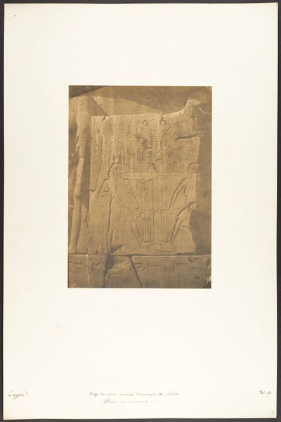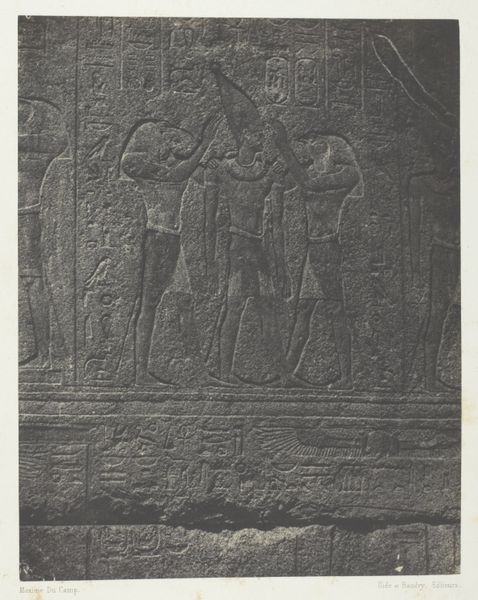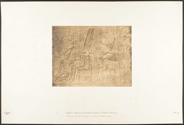 Maxime Du Camp made this photograph of a granite bas-relief, depicting Pharaoh Thutmose III with the Goddess Nauth, during the mid-19th century. Granite is an incredibly dense and weighty material; think of how much effort went into quarrying, transporting, carving, and erecting this pillar in the first place. The original sculpture embodies the labor and resources of an ancient society. Du Camp's photograph captures the texture and scale of the pillar and the intricate details of the carved figures, but the photograph itself also reflects a specific moment in time. The image marks the advent of photography as a tool for documentation and dissemination. It democratizes access to ancient artifacts, allowing viewers to experience the grandeur of Egyptian art without physically traveling to the site. Yet, in doing so, the photograph flattens the object, turning a monumental sculpture into a reproducible image. Considering the labor invested in both the original sculpture and the photographic reproduction encourages us to think about the varied forms of skill and value that coexist within art history.