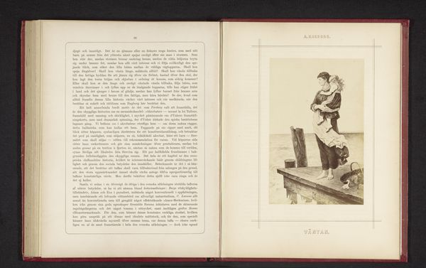 Editor: This is a photographic reproduction of a painting, before 1879, by Hugo Salmson, showing a seated woman with a hoe. It's really striking how the image emphasizes the texture of the woman’s clothing and the woven basket behind her. What stands out to you in this piece? Curator: Immediately, I’m drawn to the materiality of this image. The photograph itself, reproduced in this book, is the product of specific industrial processes, labor, and decisions. But even prior to that, there's the depicted painting – a representation of labor in the form of a peasant woman, most likely romanticized, based on the time and “style” of the print, a woman holding her tools of production, the hoe. This highlights the hierarchy of materials, labor and class at play within the depicted image and its physical representation. Consider how the materials available and the labor involved would impact its production, distribution, and even its interpretation. Editor: That’s a perspective I hadn't considered. I was so focused on the aesthetic of the Romanticism tag. How does thinking about materials change our view of the artistic intent? Curator: The Romantic gaze often obscured the realities of working-class life, but by interrogating the materials and the means of production, we confront that obfuscation directly. This allows us to analyze whose labor is visible, whose is not, and to what ends art is produced. Who would have owned this book and seen the original image? What socioeconomic class might she come from, given the state of Sweden's political economy and labor practices at this time? Editor: So, by focusing on the tangible aspects of the artwork and its creation, we can peel back layers of social commentary that might otherwise remain hidden. Curator: Precisely. It pushes us to question the narrative presented and unearth the realities embedded in the artistic process and consumption. Editor: This has broadened my understanding immensely. It’s amazing how much can be gleaned from considering the material realities surrounding a work of art. Curator: Indeed, viewing art through a materialist lens offers a richer, more nuanced engagement with both its historical context and its contemporary relevance.