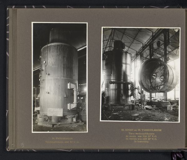 Curator: What grabs me here is that this seemingly straightforward image, "Boiler for the Tangoelangin Sugar Factory, Java, 1916," transcends mere documentation. It’s a photograph, but more profoundly, it's about labor and industry during the colonial era. Editor: It's very imposing. The boiler dominates the frame, but it feels almost… clinical, in a way? It makes me think about how these machines were part of larger industrial processes, almost divorced from human interaction. How would you interpret that in terms of materiality? Curator: I'm fascinated by the evidence of production it reveals. Think about the construction: each rivet, pipe, and valve tells a story of fabrication and assembly. And this wasn’t happening in a vacuum. This boiler symbolizes the intense industrial extraction occurring in Java at the time, feeding global markets. We need to consider who built this machine and the conditions they worked under. Editor: So you're seeing this photo as a trace, evidence of specific labor practices rather than just an image of a machine. It seems like a pretty straightforward image… do you find a more hidden class message as well? Curator: Absolutely. The photograph hides a multitude of actions of the human workforce, the exploitation inherent in the colonial system, and the export of resources. This wasn't about celebrating local artistry, but about extracting value and shifting wealth elsewhere. Editor: Wow, I didn't think I could look at a boiler in such an interesting and complex way. Seeing the factory, I wasn't thinking of human extraction... Thank you for helping me get the broader context of the factory process. Curator: My pleasure. It shows how something as mundane as industrial machinery becomes powerful when examined through a material lens, illuminating the historical context of production and exploitation.
