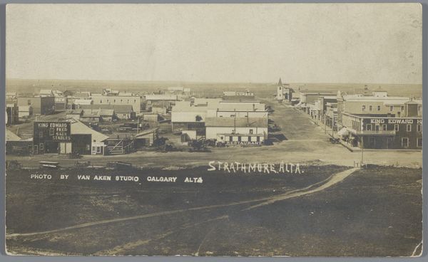 This albumen print, "Minneapolis," was created by Benjamin Franklin Upton. The photograph shows a landscape defined by horizontal lines formed by buildings and roads, creating a structured view of the land. The composition uses a high vantage point, allowing the viewer to survey the scene. We see how Upton manipulated perspective to flatten the space, which gives a sense of the city's emerging order. Upton's work captures a specific moment in the city's development. What is not shown, like the social and economic contexts of the time, offers a complex reading of the photograph. The visual details of the built structures and the arrangement of space can be interpreted through the lens of semiotics. The buildings and roads symbolize progress and expansion. This intersection between form and representation invites ongoing interpretation, reflecting broader cultural narratives of urban development.