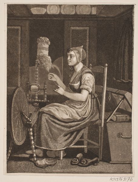Johann Koler created "Ketraja," an undated watercolor painting that offers us a glimpse into 19th-century Estonian life. This intimate portrayal depicts a young woman diligently working at a spinning wheel. Her traditional attire, complete with a red headscarf, speaks to her cultural identity and place within a rural community. Notice how Koler captures a quiet, introspective moment. The woman's gaze is cast downwards, focused on her task, hinting at the labor and skills that define her daily life. Koler’s choice to depict a woman engaged in domestic work touches on broader themes of gender and labor. It invites us to consider the roles and expectations placed upon women in 19th-century Estonia. Does this image honor labor, or does it re-inscribe stereotypes? "Ketraja" becomes a powerful reflection on identity, tradition, and the lived experiences of women.