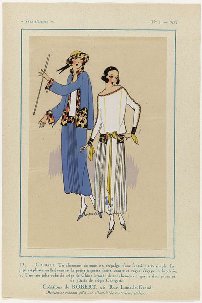 Editor: Here we see Florence Wyman Ivins' "Dancers," held at the Harvard Art Museums. The flowing lines and soft colors give it a dreamlike quality. What do you see in this piece? Curator: I notice the emphasis on the dancers' costumes. The detail suggests a focus on the material production of performance—the fabrics, the dyes, the labor of creation, even the social context of the time. Where did these materials come from? Who made them? Editor: That's a fascinating perspective. It makes me consider the economics behind the artistry. Curator: Exactly. We can then ask ourselves: what does the image tell us about the consumer culture surrounding dance and theatre during this period? What do you think? Editor: Now, I see so much more to this work than initially perceived!