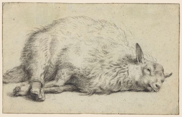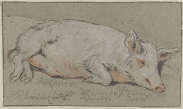 This delicate drawing of a reclining wild boar was created by Jean Bernard, a Dutch artist, during the late 18th or early 19th century. The boar, rendered with meticulous detail, lies still, perhaps sleeping or recently hunted. The image of the wild boar carries a deep symbolic weight, echoing through history from ancient mythologies to Renaissance heraldry. Often associated with courage, ferocity, and the hunt, the boar is a recurring figure in the collective unconscious, a primal symbol that elicits both admiration and fear. Think of the Calydonian Boar of Greek myth, a beast of destruction and chaos, or the boar's head, a traditional dish symbolizing triumph over the wild, served at medieval feasts. Consider how this image might engage our primal instincts, stirring ancestral memories of the hunt and the struggle for survival. The boar, in its stillness, becomes a mirror reflecting our own complex relationship with the natural world, a relationship forever marked by the cycle of life, death, and transformation.