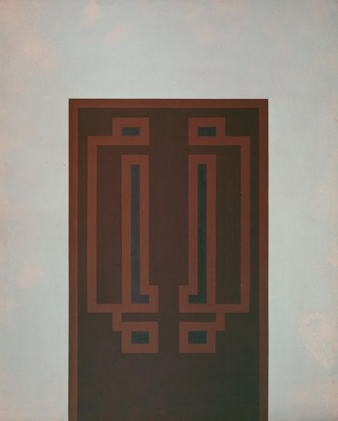 Editor: This is Robyn Denny's large-scale painting "Garden," from an unknown date, held at the Tate. It has these cool, muted colours, and the shapes are very geometric. How would you describe this piece? Curator: Thinking about Denny's process, I see a negotiation between industrial production and individual artistry. What are these colours made of? How do they communicate with the architectural scale? It reflects the post-war optimism and the materials of construction that were shaping urban landscapes. Editor: So, it's not just about abstract shapes, but also about how it was made and what those materials represented? Curator: Precisely. The very materiality of the painting and the labor involved speak volumes about the era and its ambitions. Editor: That gives me a whole new perspective. Thanks! Curator: It shifts our gaze from pure aesthetics to the means of production, which are equally telling.