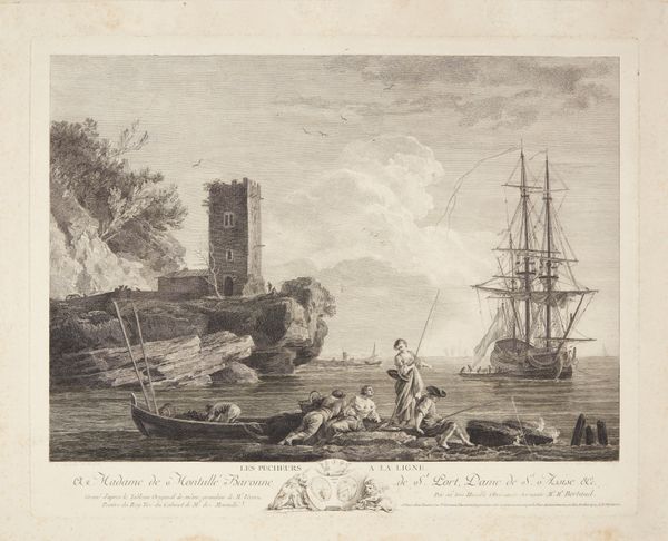 Editor: This is Jean Jacques Leveau's "The Dawn of a Beautiful Morning." The etching has a melancholic, almost ghostly feel. What can you tell me about this piece? Curator: The production of this etching is fascinating. Think about the labor involved, from the mining of materials for the plate to the printing process itself. How does this impact your understanding of the artwork? Editor: It's interesting to consider the sheer amount of work required. Does that somehow elevate the print, seeing the skill and labor that went into it? Curator: Elevate, perhaps, but also democratize. Etchings like this allowed for wider distribution of images. What social and economic factors facilitated its production and consumption in 18th-century Europe? Editor: I never thought about it that way. So, it’s less about the "aura" of a unique artwork and more about accessible imagery for the masses? Curator: Precisely. And that accessibility redefines art itself, changing its purpose and audience.