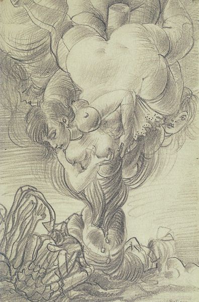 Hans Bellmer made this drawing, one of his "Variations around La Poupée", with pencil, giving it a ghostly, tentative feel. It's like he's thinking through the form of this strange doll-like figure, letting the lines build up and accumulate until the image emerges. I’m really drawn to the texture in this piece; the way the pencil creates a soft, almost hazy atmosphere. Look at the doll's hair for example – it’s not just lines, but a whole field of marks that suggest volume and movement. Then there are those ladders – they kind of dissolve into the background, adding to the dreamlike quality. The doll herself feels like a puzzle, assembled from different parts. Bellmer reminds me of the drawings of Philip Guston, both artists are interested in how the process of making becomes visible in the final work. It's not about perfection, but about the messy, awkward, and ultimately human act of creation.