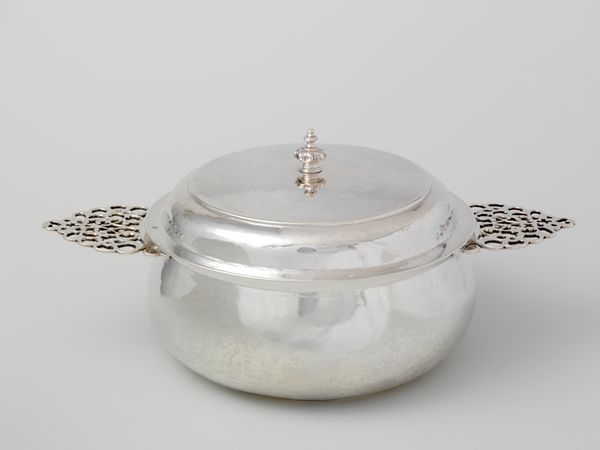 Curator: Well, this silver chamber candlestick by George Wickes, dating from 1743-1744, certainly presents a striking object. It resides here at the Metropolitan Museum of Art. Editor: My first thought is simply, what remarkable craftsmanship. The eye is immediately drawn to its flawless, silvery surface. It gives the impression of opulence and restraint. Curator: Its Baroque elements contribute significantly to that effect. Note how the form follows function, enhanced with decorative flourish. Editor: Indeed. The Baroque loved a flourish. Can you speak to how pieces like this functioned within the domestic sphere of the time? It clearly wasn't designed for your average household. Curator: Of course. Objects such as these, particularly in silver, reflected status and societal role. A piece such as this was most likely created for a wealthy home, designed for servants to carry to light the way in dimly lit interiors or transport it to a boudoir before the person retires for the evening. Its purpose becomes intrinsically connected with expressions of wealth, and indeed, control of domestic space. Editor: Thinking about space and interiority... it prompts deeper consideration of candlelight itself during this period. This object mediated encounters with light, in turn governing experience, mood, and the rhythms of daily life for its owners. Curator: Very true, this brings a lot of meaning to what initially appeared as purely utilitarian. Its value goes well beyond the mere function of illumination. Editor: I’m thinking, too, about how the polish and maintenance of this object might reflect social rituals; the labor required and status displayed by something that looks simple, yet represents power through reflective appearance and functional elegance. Curator: Indeed. Considering it from multiple vantage points really showcases how history shapes design. Editor: Precisely. Examining these forms reminds us that they weren't just objects but complex expressions of social order.