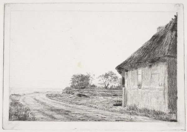 Julius Jacobus van de Sande Bakhuyzen made this landscape featuring a farm, and a shepherd with sheep, using watercolor and graphite on paper. In this landscape, the artist skillfully layers washes of diluted pigments to create depth and atmosphere. Each stroke contributes to a scene imbued with social and cultural significance, emphasizing the simplicity and harmony of rural existence. The artist's choice of watercolor allows for a certain lightness and transparency, lending a dreamy quality to the composition. Bakhuyzen's technique is characterized by subtle gradations of tone and color, capturing the nuanced effects of light and shadow. The loose, flowing brushstrokes convey a sense of movement and vitality, while the muted palette evokes a feeling of tranquility and nostalgia. By focusing on the inherent qualities of the watercolor medium, the artist elevates a simple rural scene to a timeless representation of natural beauty. Ultimately, the importance of materials, making, and context in understanding the artwork lies in its ability to evoke a sense of connection to the land and its inhabitants. It blurs the lines between observation and sentimentality.