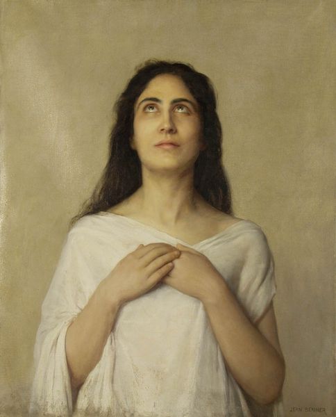 Černá Káča is a portrait made by Maximilian Pirner, in which the delicate application of pastel creates a soft, almost dreamlike quality. The subdued palette centres on the face of the woman, lending her an enigmatic and intimate presence. The woman’s gaze draws us in, but it's the arrangement of light and shadow that truly animates the composition. The muted tones and diffused light may evoke a sense of melancholy. Consider how Pirner might have been influenced by symbolism, where artists explored subjective and emotional realities through subtle visual cues. The artist's treatment of her hair, cascading down her shoulders in dark, flowing strands, adds a layer of complexity. Here, the texture and color function semiotically, perhaps reflecting the period's fascination with the symbolism of hair as an expression of sensuality and the inner self. How does the use of line, color, and form communicate ideas about identity, emotion, and the subjective experience of the world? What does the treatment of the subject tell us?