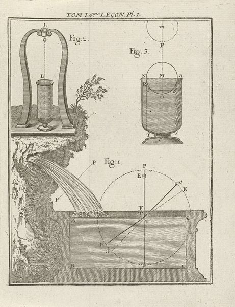 Curator: Natuurkundige instrumenten, or "Physics Instruments," is an engraving made in 1759 by Nicolaas van Frankendaal, housed here at the Rijksmuseum. The piece gives off a sterile, almost clinical feeling. What catches your attention? Editor: Well, immediately I’m struck by how clearly functional everything seems. These aren't just shapes; they are clearly tools, carefully arranged on shelves. I’m interested in how such technical drawings might be considered art. As a materialist, how do you view a piece like this? Curator: The beauty lies within the functionality, the labor, and the dissemination of knowledge. This isn’t fine art in the traditional sense. But look closely – the careful lines, the labeling. Van Frankendaal, as a maker of prints, controlled the reproduction of knowledge. The question is not "is this art?", but "what work does this image do?" How does the medium shape our understanding of scientific inquiry at the time? Editor: That’s interesting. So you’re less concerned with aesthetics and more with the process of creating and distributing the image, and how it reflects the value placed on scientific knowledge? Curator: Precisely. The print’s existence points to the material culture surrounding scientific advancements. Consider the paper itself, the ink, the printing press—these elements tell a story of 18th-century production. And the purpose it serves is not purely aesthetic, but educational. These prints democratized knowledge to some extent, enabling the replication of these drawings. Editor: I see, it's fascinating to consider the materials and process as a key to understanding its artistic value. So the image becomes a window into both science and society at the time. I hadn't really thought about it like that. Thanks for helping me expand my view! Curator: Of course! Viewing the material conditions around production is crucial to art history.