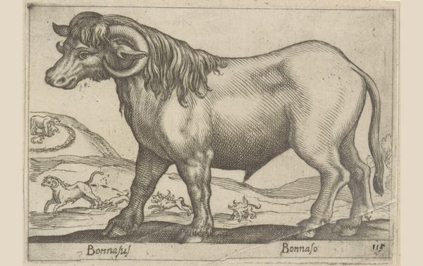 Editor: Here we have Antonio Tempesta's "Goat with Six Horns" from before 1650. It’s an ink engraving, and what immediately strikes me is the sheer density of the lines used to create texture. How do you interpret this work? Curator: The density of lines isn't just texture; it's labor. Look at the meticulous process of engraving each line into the metal plate. It speaks volumes about the time and skill invested. This isn't just an image of a goat; it's a document of early printmaking techniques and the social status afforded by such refined craftsmanship. Does the material execution influence your understanding of the subject matter? Editor: I suppose I hadn't considered that the act of *making* the artwork was part of its meaning. It does change how I see it; the work becomes less about the animal itself and more about how it represents artistic skill, early capitalism, and even trade since it’s a print. Curator: Exactly! The Baroque period witnessed an explosion in printmaking. Prints like these were commodities, traded and consumed. Considering the materials – the paper, the ink, the metal plate – how does this print participate in a larger network of production and distribution? Editor: The work's reproducibility speaks to how the market consumed art during that time. And looking closer, even the paper seems integral. Curator: Precisely! Thinking about the materials opens up layers of understanding that a simple aesthetic appreciation might miss. Do you agree it transforms the reading of the "goat" itself? Editor: Definitely. Seeing the artwork through this lens really underscores the material realities of artistic production in the Baroque era. I wouldn’t have noticed this without your insight into the historical context.