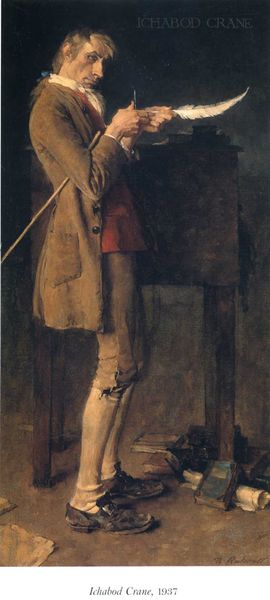 Curator: Stepping closer to James Abbott McNeill Whistler’s "Arrangement in Black, No. 3, Sir Henry Irving as Philip II of Spain", painted in 1876, I'm immediately struck by the controlled palette and dramatic lighting. The figure almost seems to emerge from the darkness. Editor: There is a powerful, somber feeling—the severe dark colors set the stage for the drama embodied by this figure. The face almost seems mask-like with hidden stories behind it. I'd be interested to examine his posture. What might it be trying to say about identity, or perhaps politics, in this time? Curator: This painting is indeed full of layers. Whistler was interested in more than a simple portrait. It represents actor Henry Irving in the role of Philip II, King of Spain. Irving’s interpretation of Philip was revolutionary—and that’s precisely what Whistler wanted to capture. Editor: That’s compelling. In this context, we could examine Philip II as a historical archetype: the burden of power, isolation... these symbols persist throughout history. He carries this very solid book almost like a weapon or at least a defense, yes? Curator: Precisely, but more than that, consider this: How often are historical figures viewed through performance? What we think we know of historical power often comes from carefully constructed narratives, presented on stage and in literature. Editor: That speaks to the tension between reality and constructed image, so relevant to today. It challenges us to see how authority—both theatrical and real—relies on visual symbols and presentation, especially of masculinity. His black cape isn’t just fabric, but authority. Curator: Whistler uses very subdued tones, allowing only a few details to truly stand out, almost mirroring the way certain historical narratives amplify particular details to tell a specific story. Look at the intricate details of the King’s costume versus the very sketchy indication of other aspects, for example the legs, in contrast to the strong presence of his book, jewelry, and even that wispy feather! Editor: Thank you for expanding my understanding. Thinking about the long reverberations of symbols throughout history – a fresh viewing provides new opportunities for considering and reflecting on today’s culture and political symbols and those performing on our global stage. Curator: Absolutely. The image encourages us to explore this figure at a specific time but also in terms of a long lineage of representational authority.