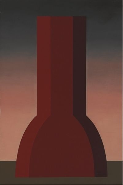 Editor: This piece is simply called "Painting" by Roberto Aizenberg, created in 1989. The geometric form really dominates the canvas, doesn’t it? It's stark and kind of imposing against that muted background. What do you make of it? Curator: The image immediately strikes me as a confrontation with institutional power and architectural authority, reflecting a dialogue about control embedded in geometric abstraction. It resonates with similar structures in art and totalitarian regimes and mental institutions of that period. What power dynamic did Aizenberg confront with this choice? Editor: That’s a fascinating take. So you're not seeing just a shape, but a commentary on power structures? Curator: Exactly. Aizenberg's painting, from my point of view, becomes a visual battleground questioning cultural and historical perspectives about Modernism, potentially reflecting a personal rebellion. It’s interesting to think about where this painting might have been displayed when it was new – what message did it communicate in that context? Editor: Hmm, interesting point. Given that it's geometric, I initially saw it more formally, but I guess its lack of ornamentation suggests more social and cultural implications? It is sort of looming and bare. Curator: Yes, Aizenberg reduces it to its basic form. This invites viewers to question art's autonomy from public influence and its complex interactions with the structures within society. How might his abstract visual language question established perspectives during the period in which it was made? Editor: I’m rethinking how I approach abstract works now. Considering that they are just as infused with meaning as more representational paintings! Curator: Precisely!