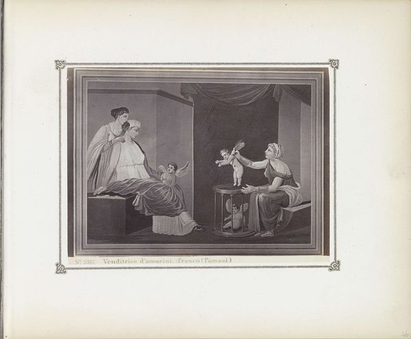 Laurens Lodewijk Kleijn created this photograph, "Fotoreproductie van een wenende vrouw bij een ledikant", using a monochrome palette to depict a somber scene. The stark contrast between light and shadow intensifies the emotional weight of the image, drawing our attention to the human figures within. The composition is structured by the stark, vertical lines of the doorway, which bisect the space and frame the seated, weeping woman. This figure, shrouded in light, is contrasted by the darker, receding space around her, emphasizing her isolation and grief. The eye is drawn to the figures, creating a focal point for the viewer. The lighting serves to highlight the faces and gestures of the women, underscoring the raw emotion conveyed. The image’s power stems from its ability to capture a moment of intense sorrow, rendered through the formal devices of light, shadow, and composition. These elements work together not only to document a scene but also to evoke a profound sense of empathy and reflection on the human condition.