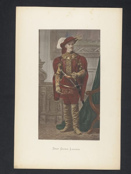 This is a portrait of Count Hugo zu Salm-Reifferscheidt-Raitz made by an anonymous artist. The count is depicted in a full-body shot, his figure dominating the composition. A striking red hue distinguishes his attire, contrasted by neutral greys and browns, creating a vivid, almost theatrical presence. The composition and the colour scheme may at first seem conventional. Yet, in a way, the portrait unsettles traditional notions of representation and power. Hugo zu Salm is not presented with the usual symbols of wealth or authority. Instead, he is set against an ambiguous backdrop. The artist avoids specific indicators of status, directing our attention to the individual qualities of the subject. There is a semiotic interplay between the individual and the societal role. The count is both a distinct person and a representative of his lineage. The artist captures this tension through the careful treatment of form, challenging any fixed interpretation.