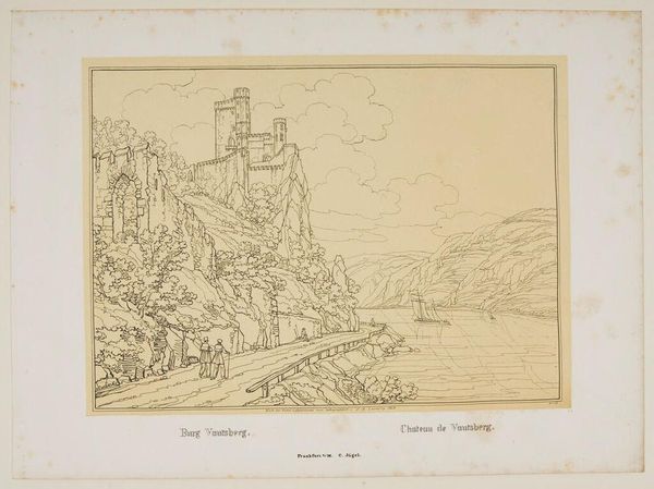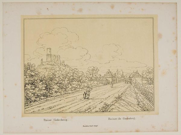 Curator: At first glance, the etching of "Ruinen der Heimburg" projects a stillness. It feels like time itself is holding its breath. Editor: I agree. There's this gentle melancholy, like a faded memory being recalled. The artist, Johann Adolf Lasinsky, captures the quiet grandeur of a landscape marked by history. Curator: Absolutely. The ruins, perched above the village, speak to the power dynamics embedded in space and architecture. It invites us to consider how these structures shape and are shaped by the people who inhabit them. Editor: And the detailed rendering of the foliage, almost like a delicate lace, juxtaposes so beautifully with the rigid lines of the buildings. It’s a visual conversation about nature reclaiming the man-made. Curator: It really encapsulates the essence of Romanticism. I’m seeing themes of nature's power against human endeavor. Editor: Yes, thinking about it now, the details really help to convey not just a scene but an emotion. It makes you wonder about the lives lived in the shadow of the ruin. Curator: It does urge us to connect not only with the art, but also with the rich historical tapestry it depicts. Editor: A lasting image, indeed!