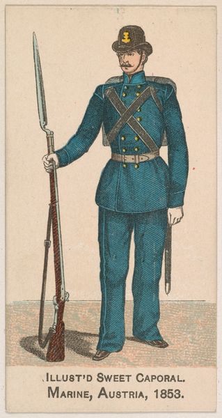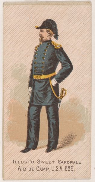 This chromolithograph from 1886, issued by Kinney Tobacco Company, depicts a Second Lieutenant of the United States Army. Note the Pickelhaube helmet, topped with an eagle, a symbol laden with cultural weight. The eagle, a powerful emblem since antiquity, reappears across empires, from Roman legions to Napoleon's standards, embodying dominion and authority. Here, it signifies the might of the United States military. This symbol transcends mere representation, tapping into deep-seated psychological associations of power and control. Its continued use reflects a human need to align with forces perceived as invincible, engaging viewers on a subconscious level. The motif's persistence illustrates the cyclical progression of cultural symbols. Over time, the eagle has resurfaced, evolved, and taken on new meanings in different historical contexts, adapted to new ideologies, and reinforcing humanity’s collective memory.