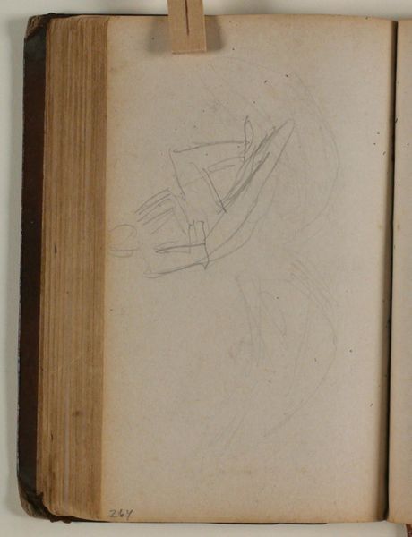 Curator: I'm struck by the raw quality of this quick sketch. It seems almost like a fleeting thought, barely captured on paper. Editor: Indeed. This is "Studie af næsebjørn" – "Study of a Coati" – by Niels Larsen Stevns. We think it was likely executed sometime between 1864 and 1941. The medium seems to be pencil and graphite, possibly with some coloured pencil work as well. You can see it here in a sketchbook from the collection of the SMK, the Statens Museum for Kunst. Curator: A coati, huh? I can see the form, but it’s so light and almost ephemeral. Like a dream animal glimpsed in the early hours. There is also some handwriting and numbering next to it, probably the artist keeping a track of all their study works. I think he was really interested in catching how the light creates dimension. Editor: You’ve keyed into something crucial there. During the late 19th and early 20th centuries, museums became sites of both artistic study and public edification. Artists like Stevns used museum collections as sources for their own practice, making studies like this. I am guessing that Stevns went to a Copenhagen museum to view this animal, probably behind a fence. It highlights the complex relationship between museums, nature, and artistic production. How did people in this time have encounters with different animals from all around the world. Curator: That contextualizes the sketch perfectly! It is really a reflection on captivity in so many ways, when you bring up that angle. Also, there is the way that zoos display life forms, the ways that some lifeforms remain behind the bars of language. Is it simply a "coati"? That clinical label flattens any spiritual dimension to this being, doesn’t it? Editor: Precisely! And I think Stevns, through the quick, tentative nature of the sketch, is almost hinting at that fleeting, ultimately unknowable quality. He’s not aiming for anatomical precision; he’s chasing an impression, a feeling of something elusive. It brings the real animal closer, without us realizing it. Curator: I agree. I thought the study was missing detail, now I know this was because the animal itself couldn’t even be truly present in the studio in any meaningful sense. A really wonderful capture then. Editor: An image prompting so many reflections, still inspiring thoughts almost a century on. A good outcome, I think.