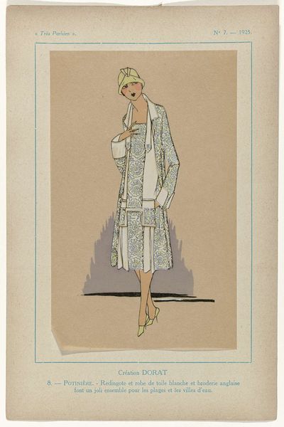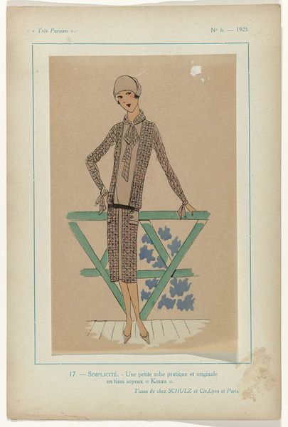 This fashion plate by G-P. Joumard, "Très Parisien", was made in 1925 with some kind of printmaking technique. It’s all about capturing a moment, a mood, right? Look at the way the dress pattern flattens and distorts the figure. It's like the dress is wearing the woman, not the other way around! The colour palette feels very limited, muted tones that speak of another time. But within that, the details are so precise - the little blocks of blue and white in the fabric, the soft rendering of the woman's face. It’s almost as if the fashion is more alive than the person wearing it. The overall effect is of something fleeting, a moment caught in time. It makes me think of the way artists like Manet used fashion to explore themes of modernity and artifice. Like this image, his paintings open a space of imagination around the clothing, not just the people.