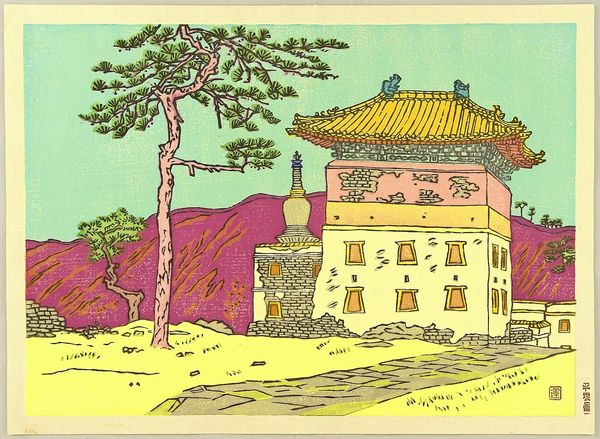 Curator: Standing before us is Nicholas Roerich’s "Study to Wanderer of the Light City," created in 1933, using watercolor to depict a mountainous landscape. Editor: It strikes me immediately with its almost dreamlike quality. The soft blues and the muted pinks of the architectural structure nestled into the land create this very ethereal feeling. It is simultaneously serene and otherworldly. Curator: Roerich's choice of watercolor as a medium lends itself to that ethereal feel you're describing. Watercolor allows for the kind of luminosity and blending that makes the sky feel so vast and almost tangible, doesn't it? And the texture of the paper is visible, which contrasts beautifully with the hard architectural structures. I think the handmade quality adds another dimension. Editor: Exactly, it does seem incredibly intentional—and, looking at the title, it hints towards utopian narratives prominent in that interwar period. What societal narratives, then, can we consider to better situate Roerich's landscape and use of color? The pastel tones juxtapose so strongly against the hard, clearly defined lines of the temple-like building, a manmade intrusion on the horizon that makes you question what that "light city" even represents. Curator: That contrast is intriguing. Roerich himself was deeply involved with the Theosophical Society, which was gaining traction and promoting syncretism and spiritualism at that time, aiming to create a new, enlightened world. So, I would ask, does the construction represent mankind's imposition or its reaching for the divine, or is it the raw, beautiful mountains offering divine refuge? Editor: That is a vital point! Roerich, and the Theosophical Society at large, held complex and contested views on race, hierarchy, and what enlightenment even means. I am certain that impacts not just our understanding of the landscape, but his labor, artistic choices, and materials at hand in 1933, against global economic depression. Curator: Right, understanding Roerich's personal philosophy certainly informs how we read these sharp delineations and also these soft, muted tones. Editor: It invites an exciting exploration of material conditions, societal reform, utopian desire, and potential domination... all wrapped up in a seemingly peaceful watercolor! Curator: Indeed, I see your point. The technique, combined with the context, reveals the deeper, perhaps conflicting, layers of this artwork. Editor: And that’s what keeps it fascinating to consider today.