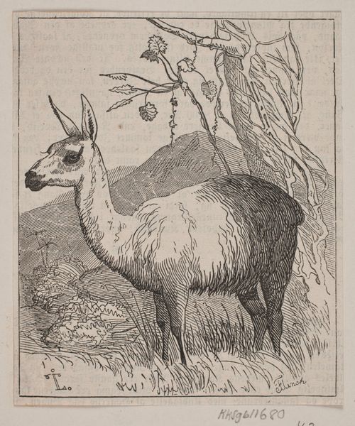 Curator: This peculiar little gem is titled "Chamois, from the Quadrupeds series," made around 1890 by Allen & Ginter for their cigarette cards, now housed at the Met. It's such a striking colored pencil drawing and print. Editor: My first thought? That chamois has seen things, you know? It’s got this really solemn, almost burdened gaze, standing on what looks like a precipice overlooking snow-capped mountains. Curator: Absolutely! Allen & Ginter created these as collectables; imagine, nestled inside a pack of cigarettes, offering smokers a momentary escape into the animal kingdom. It's this strange juxtaposition of vice and virtue, consumption and enlightenment. Editor: It's wild, isn’t it? Think about the labour involved— the drafting, printing—all fueling a completely different kind of craving. The drawing style itself leans heavily on realism but feels idealized, right? Almost like a romantic rendering for mass production. The textured background, mimicking sky and mountain, is such an odd choice to place behind such a serious figure. Curator: Definitely, the scale here also plays tricks on you. It's miniature, like a dream distilled, yet strives for scientific accuracy—aiming to educate while enticing. The colour choices seem significant too: muted tones juxtaposed with this vibrant, living creature. It evokes this gentle reverence that reminds us of humanity's relationship with nature, tinged with imperialist exploration and curiosity. Editor: Though this was popular culture intended for mass consumption, I can't help but look at how its materiality influenced its message. The coloured pencil technique allows this sense of texture that's appealing. What was seen as popular consumption really helped expose more art, allowing for art accessibility through commodity and manufactured consumer culture. How wonderfully strange. Curator: Incredibly strange, when we place such significance to things meant to disappear. We may look at this with different eyes now, and yet still be touched by this beautiful and haunting Chamois. Editor: Indeed. And through the prism of material culture, maybe understand better what and why we collect—and what that collecting reveals about ourselves and our culture, or a society as a whole.