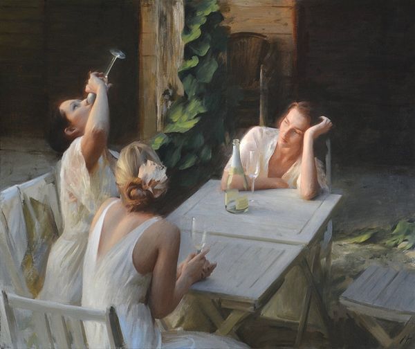 Joseph Lorusso painted this scene, "Bob Vivant," capturing a moment of repose. A figure rests, perhaps after indulging in the wine beside her. Consider the motif of sleep, a recurring symbol in art history, from Endymion lulled into eternal slumber by Selene, to the countless depictions of the sleeping Ariadne, abandoned on the shore of Naxos. In those mythic portrayals, sleep often symbolizes vulnerability or a transition to another state. Here, however, the slumber evokes a sense of everyday life. The simple gesture of the head resting on the hand echoes poses seen in classical depictions of melancholy or contemplation. This familiar gesture has evolved, losing its association with higher concepts and now evoking a sense of quiet exhaustion. This invites the viewer to connect with the image on an intuitive level. The collective memory of such images allows us to recognize and empathize with the figure’s emotional state. The symbol of sleep, endlessly cyclical, reminds us of the rhythms of life. It resurfaces in art, evolving in meaning, connecting us across time.