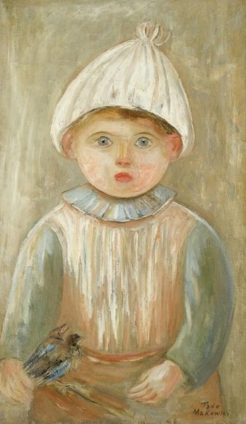Tadeusz Makowski painted this little girl, ‘Dziewczynka z rumianym policzkiem’, which roughly translates as ‘Girl with rosy cheeks’, with oil. I love seeing an artist not afraid to leave their working out on show. The surface has a wonderful, almost chalky, texture, the paint thinned and dragged, the image built up from many layers. Look closely and you can see the way the artist has laid down the paint in blocks and strokes of pale colors, like he’s mapping the face. Then he’s gone in with that fabulous rosy cheek to bring her to life. The black squares on her dress are repeated like they’re part of a pattern. It makes me think of Vuillard, with his flat planes of color and pattern, but here there’s also something a little unsettling, a touch of the uncanny. That rosy cheek is so alive, yet the rest of her feels like a ghost.