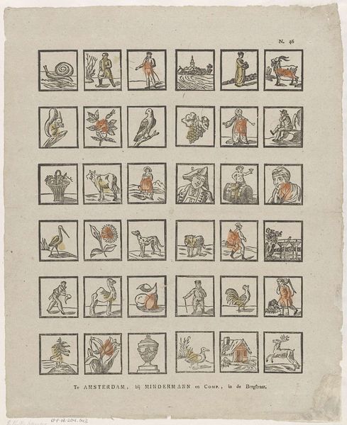 Editor: We’re looking at "Ziet jongens, hier deez' musicanten, / Het meestendeel zyn looze kwanten," a print from around 1820 by Jacobus Thompson, currently residing in the Rijksmuseum. It's comprised of a grid of musicians; their expressions and instruments suggest satire. It's an interesting mix of charm and mockery. What societal commentary do you see reflected in this piece? Curator: This print gives us insight into the socio-political landscape of the time. The title translates to "See boys, here are these musicians, mostly loose cannons". Considering its placement in a museum today, it’s crucial to understand its original intended audience and its message. We should ask, was this for the elite, satirizing the lower classes, or was it a populist piece, criticizing societal figures through the guise of these musicians? Editor: That’s a great question. The text snippets below each caricature seem almost like mocking captions. Is the humor meant to unite people, or create divisions? Curator: Precisely. Look at the depiction of instruments, some broken or poorly played. Are these individuals being criticised for their musical ability, or are their instruments stand-ins for something else? What societal roles might they represent? It makes us wonder about the role of art in reflecting or shaping class tensions in the Netherlands at the time. Editor: I never considered that the "musicians" could be representative of a certain social class. That adds a layer of depth I hadn't initially appreciated. Curator: Examining popular prints like this forces us to think critically about the distribution of imagery and power. Understanding who is being represented, who is doing the representing, and to what effect, is key to interpreting this artwork’s historical context. Editor: I'll definitely be more conscious of that power dynamic when considering art's impact. Thanks for broadening my perspective.